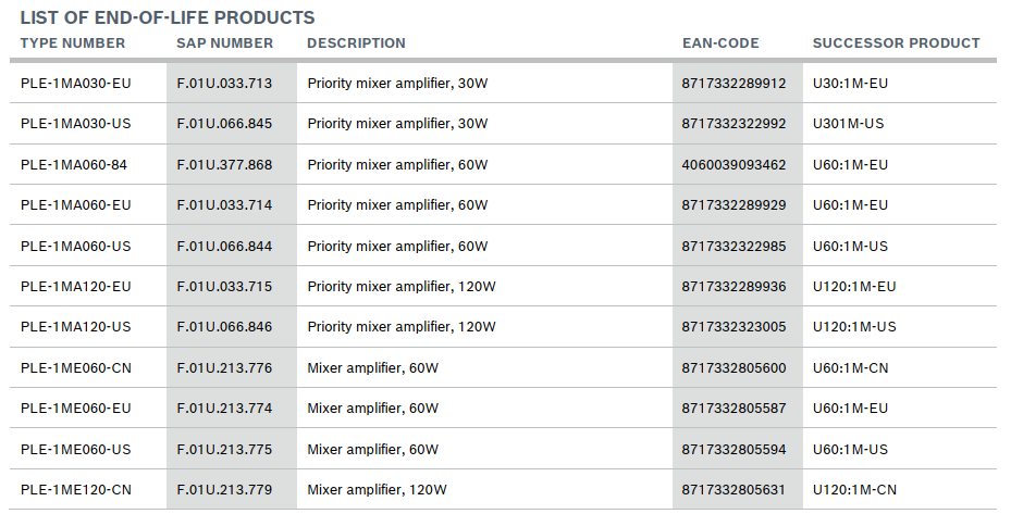 DANH SÁCH SẢN PHẨM EOL: